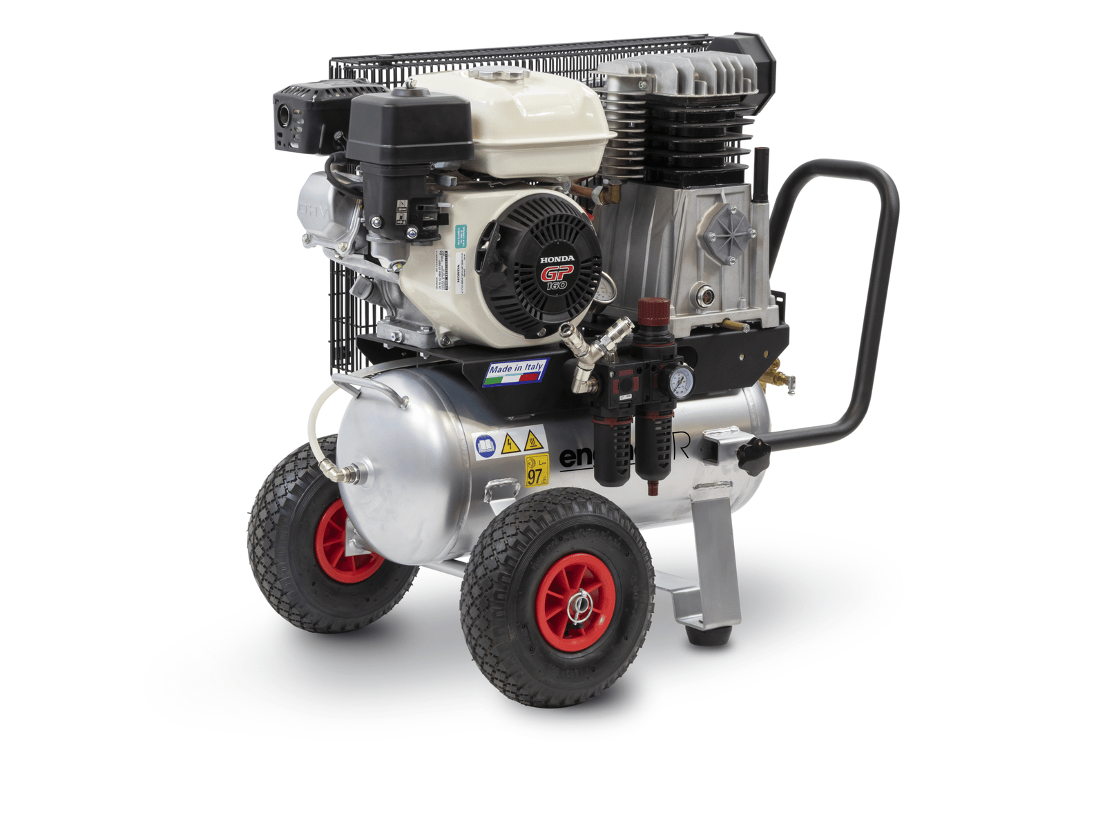 The EngineAIR 24 LT – petrol has a lower noise level and a Mobile configuration that allows easy movement of the product.